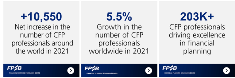 For further details on worldwide CFP professional growth in 2021, view FPSB’s infographic.